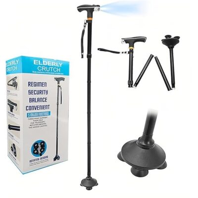 Canne de Marche Pliable avec Lumière LED et Base Stabilisatrice