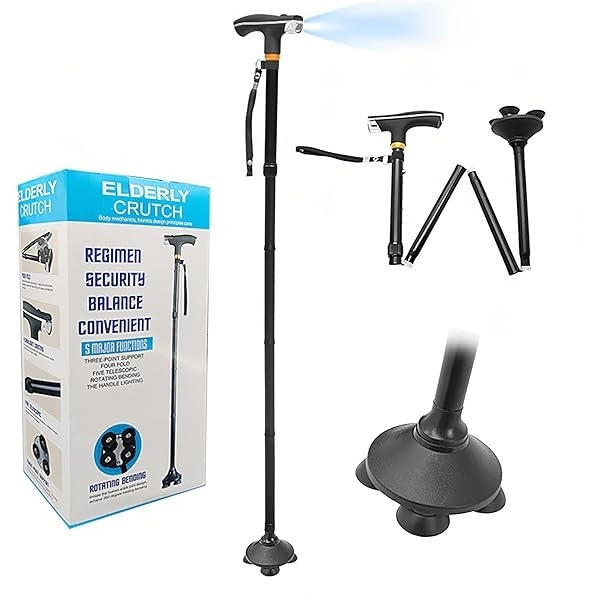 Assurez vos déplacements avec cette canne de marche innovante. Pliable, réglable et dotée d’une base pivotante ultra-stable, elle intègre une lumière LED puissante pour éclairer votre chemin. Idéale pour une utilisation quotidienne et les voyages.