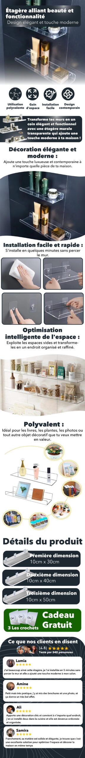 زيد لمسة عصرية لدارك مع رف الحيط متاعنا! متوفر بثلاثة قياسات، يجمع بين الأناقة والعملية، ومثالي لكل الغرف. التركيب سهل ومن غير ما تثقب الحيط.